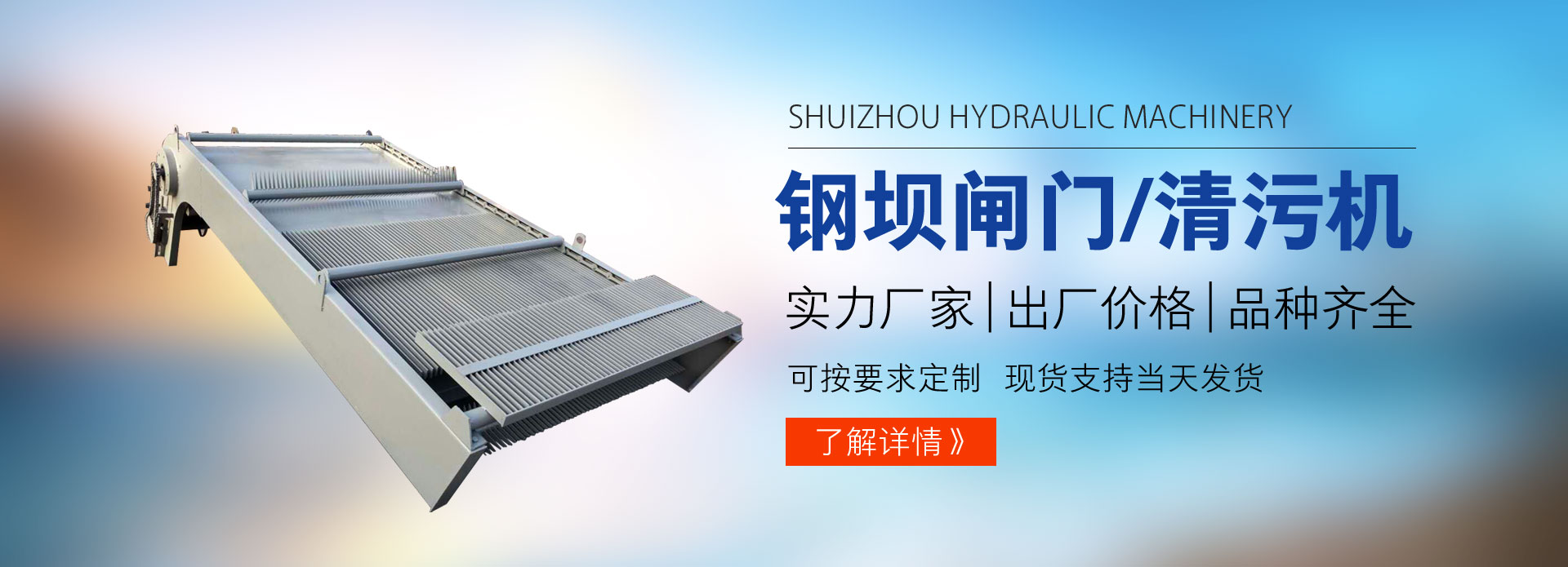河北水洲水利机械有限公司 专注生产铸铁、钢制闸门、螺杆启闭机、钢坝、拍门、清污机等